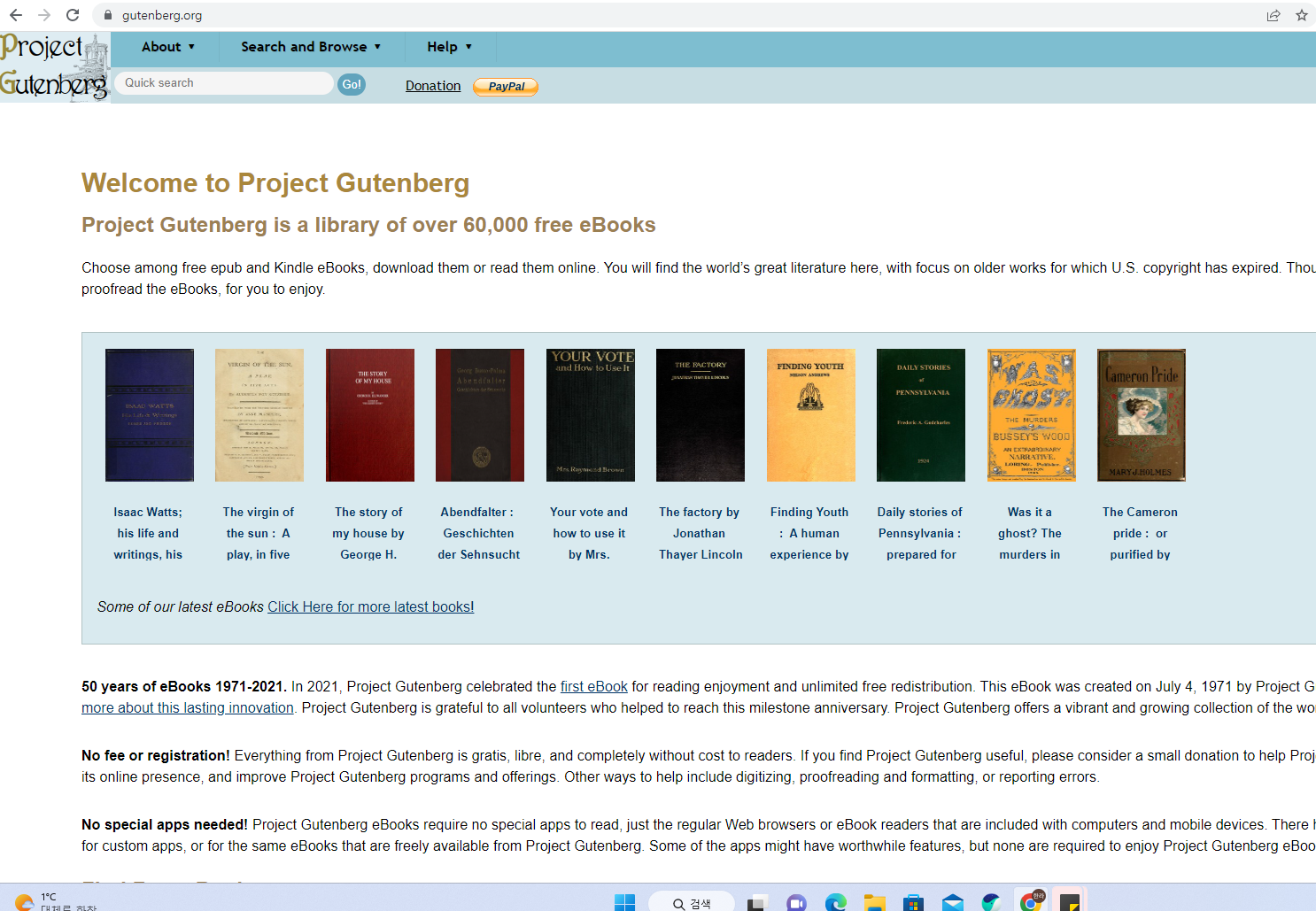 프로젝트 구텐베르크 (저작권이 만료된 작품들 모아놈)